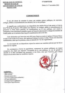 Pour justifier l’arrestation du maire de Barthélémy M. Tine a ajouté : « Conformément aux dispositions des articles 96 du Code pénal et 10 de la loi n°78-02 du 29 janvier 1978 relative aux réunions, les cortèges, défilés et rassemblements de personnes et d’une façon générale, les manifestations sur la voie publique, sont soumis à l’obligation d’une déclaration préalable auprès de l’autorité administrative chargée du maintien de l’ordre public sur le territoire dans lequel la manifestation doit avoir lieu.
