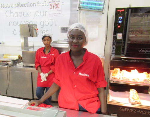 Dans ces domaines, des investissements additionnels sont toujours nécessaires pour permettre à l’entreprise de faire face à la demande de ses clients. C’est dans ce contexte que le groupe Auchan a développé, en partenariat avec des écoles sénégalaises, des formations dans les domaines du management et de la boucherie, par exemple, pour permettre aux jeunes de découvrir les métiers de la grande distribution, mais aussi d’avoir une qualification professionnelle en dehors des expériences accumulées dans l’informel comme en témoigne la photo ci-dessous.