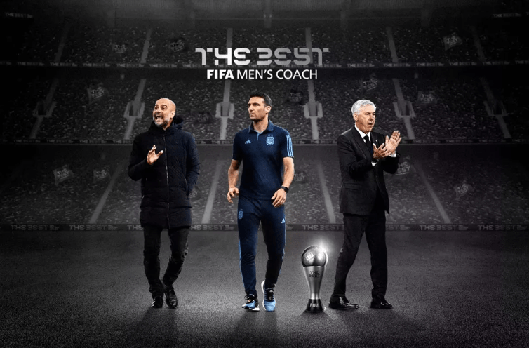 On retrouve donc Lionel Scaloni (44 ans, ARG, Argentine), vainqueur de la Coupe du Monde au Qatar avec l’Albiceleste, Carlo Ancelotti (63 ans, ITA, Real Madrid), qui a remporté la Liga, la Ligue des champions et des Supercoupe d’Europe et d’Espagne, et Pep Guardiola (52 ans, ESP, Manchester City), champion d’Angleterre en titre avec les Skyblues.