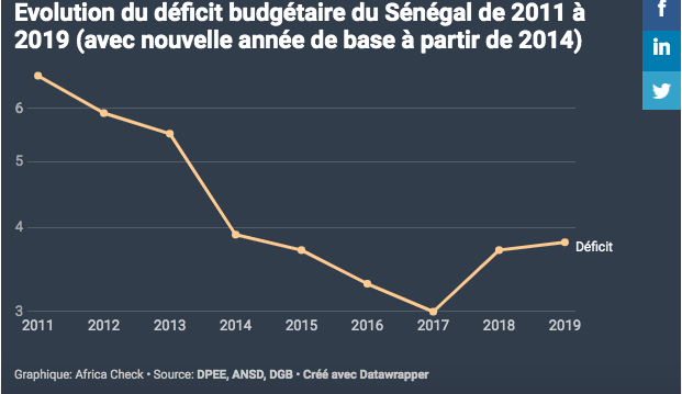 Les données consultées par Africa Check montrent que le président sénégalais a globalement raison sur les chiffres (en réalité le déficit attendu pour 2019 est évalué à 3,8 %).