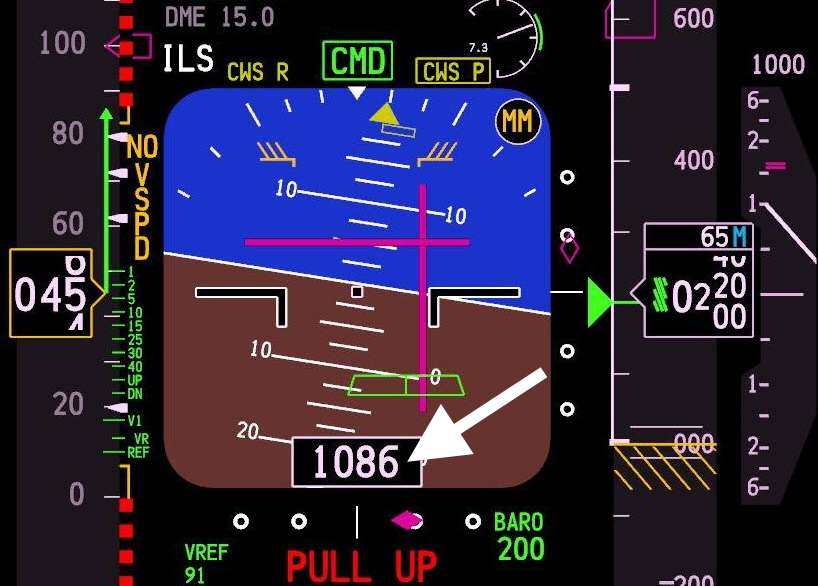 Contrairement à l’altimètre qui renseigne sur une altitude barométrique, le radioaltimètre indique une hauteur. Cette donnée est relevée en utilisant un radar dont les ondes pourraient éventuellement interférer avec la 5G. © Capture Boeing 737, Flight Simulator
