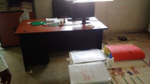 Privés d’espaces et de bureaux dignes de ce nom, en débit de l’agrandissement du centre, proviseur, censeurs, surveillants général, surveillants et professeurs de classe se sont vus obligés de transformer une sale de classe en bloc administratif.