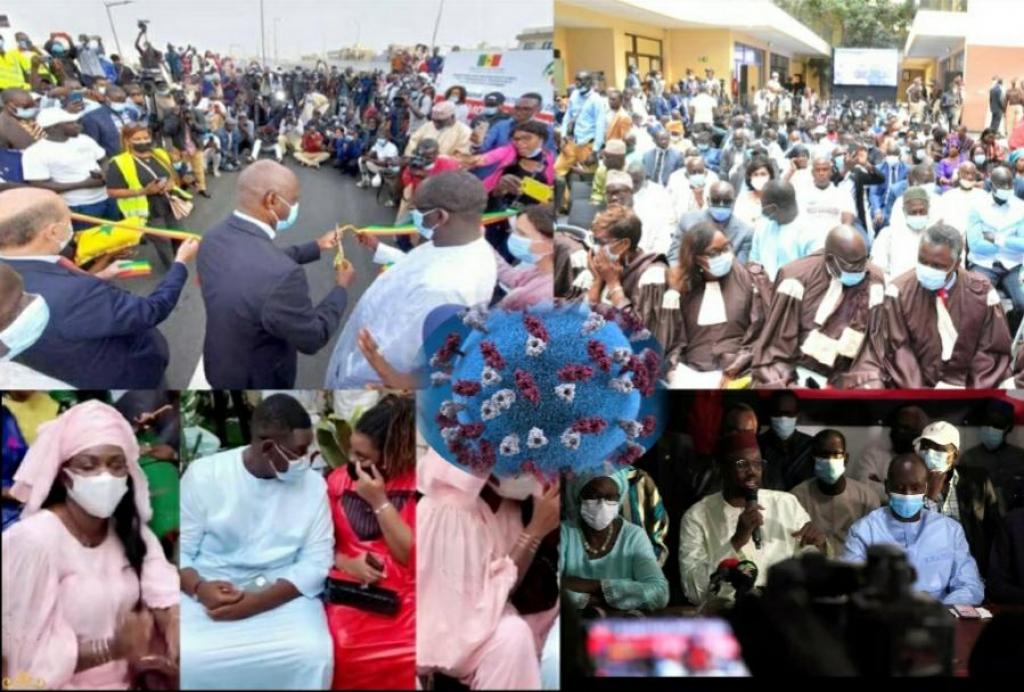 Le président de la République l’avait pourtant dit lors du dernier conseil des ministres. «La levée de l’état de catastrophe sanitaire, le vendredi 19 mars 2021 à minuit, ne signifie pas la fin de la pandémie.» Mais, les responsables de son camp politique, et même de l’opposition, se sont beaucoup joués des recommandations sanitaires. RASSEMBLEMENTS – L’affaire fait grincer des dents. Quelques heures seulement après la levée de l’état de catastrophe sanitaire par le chef de l’Etat, Farba Ngom et les responsables du parti au pouvoir ont effectué un «Maga Meeting» dans le nord du pays. Un gigantesque rassemblement de militants, qui ne fait pas rire les agents en charge de la lutte contre la pandémie. Et ce n’est pas une première dans le cas présidentiel, Censé donner l’exemple. Le 23 Décembre 2020, le ministre de la Santé, maire de Yoff, en compagnie du ministre des infrastructures, Mansour Faye, inauguraient en grandes pompes l’autopont de Yoff. Lors de la cérémonie, le respect de l’arrêté d’interdiction de tout rassemblement était oublié, le temps de l’inauguration. Ce, au moment où des manifestations, comme celles des artistes, étaient traquées et interdites. La liste de ces genres de pratiques est longue. On y trouve la célébration du 12ème anniversaire de l’alliance pour la République où avaient pris par nombre de responsables de l’Apr comme Mame BoyeDiao, Thérèse Faye, Moussa Sow, Me Djibril War entre autres. Une cérémonie qui a rassemblé du beau monde au siège du parti présidentiel. La distanciation sociale était reléguée au second plan. Ce n’est pas que du côté du pouvoir que ces pratiques sont constatées. Au domicile du leader de Pastef le 8 février et le 3 mars dernier quand Sonko partait répondre à la convocation du Juge, l’interdiction de rassemblement, les recommandations sanitaires, étaient reléguées au second plan. Et durant la période, on ne parle pas d’un jour ou d’une soirée, mais c’est une semaine durant laquelle le pays a semblé oublier le Covid-19. Ils sont nombreux dans ce pays les autorités qui appellent à respecter les mesures barrières et qui dès fois sont les premiers à faire le contraire. En pleine pandémie, la famille même du président, c’est à dire la première dame et ses enfants, avait été aperçue dans une cérémonie familiale. Même s’ils arboraient un masque, la distanciation sociale n’était pas au rendez-vous et ces rassemblements étaient proscrits. Cette situation n’est pas pour plaire au Docteur Ousmane Gueye, Directeur du Service national de l’Éducation et de l’Information pour la Santé. «Je ne parle pas de parti au pouvoir ou de l’opposition. Je parle en tant que sénégalais, médecin agent du ministère de la santé en charge d’une chose aussi importante que la sensibilisation. Et je dis que ce n’est pas joli. Ils ne doivent pas le faire. Que tout le monde sache qu’on est en pandémie.» Maderpost / Igfm]]>