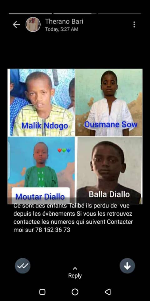 Avis de recherche ! Quatre jeunes enfants talibés issus du Daara Tafsir Diallo de Santé Yalla à Rufisque sont portés disparus depuis le lundi 29 mai 2023.