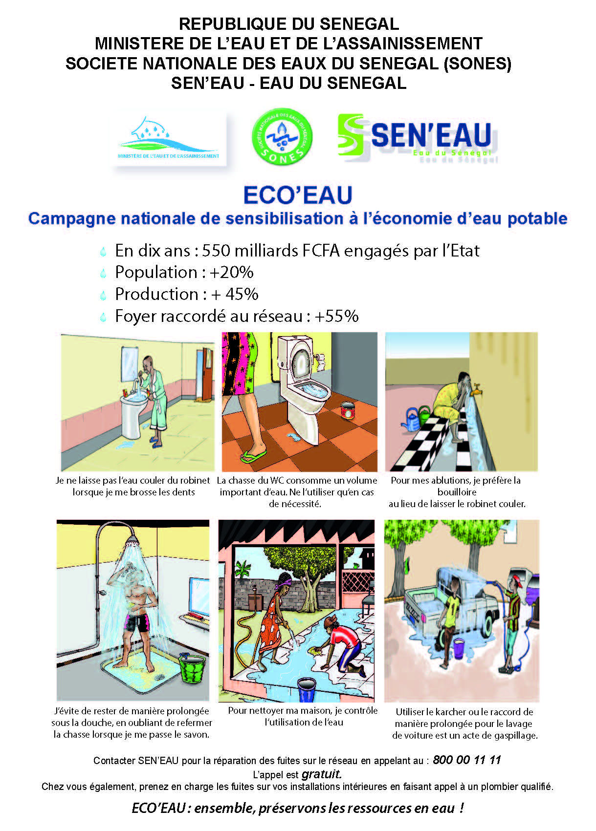 SEN’EAU et SONES lancent la campagne ECO-EAU pour inviter les populations à adopter des gestes d’économie d’eau.